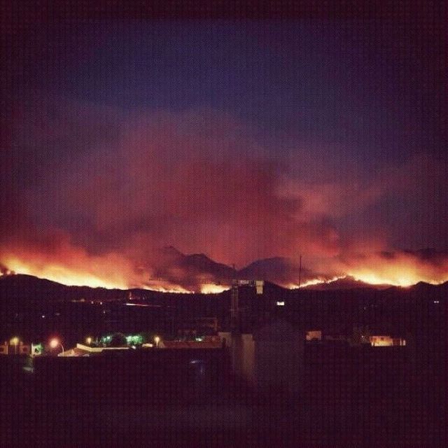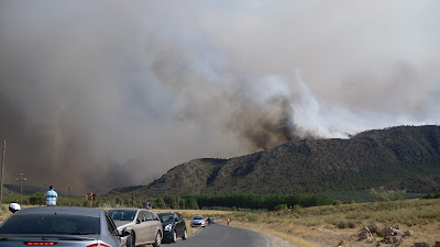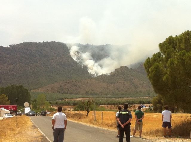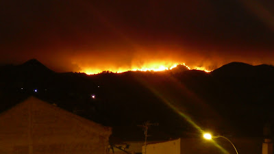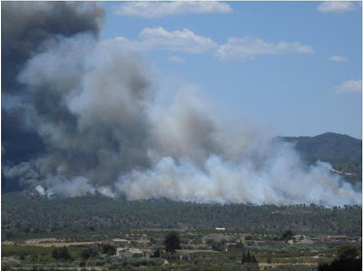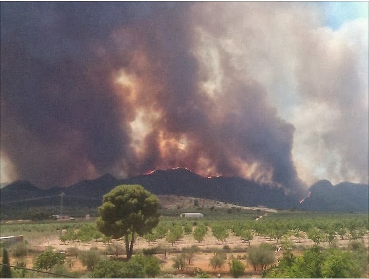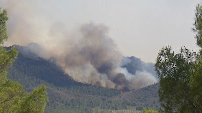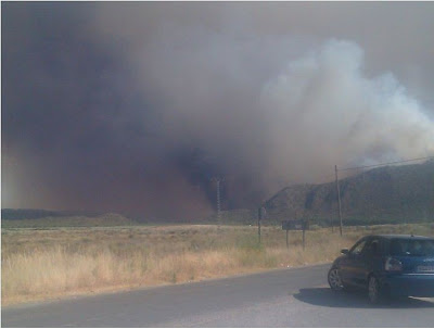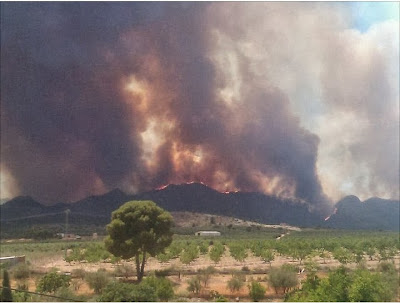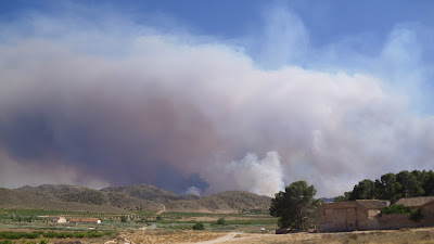 El fuego tambien ha quemado la sierra de Pajares en Murcia. El fuego estubo a punto de quemar en Cementerio de las Minas, se quedo a poco mas de 5mts.