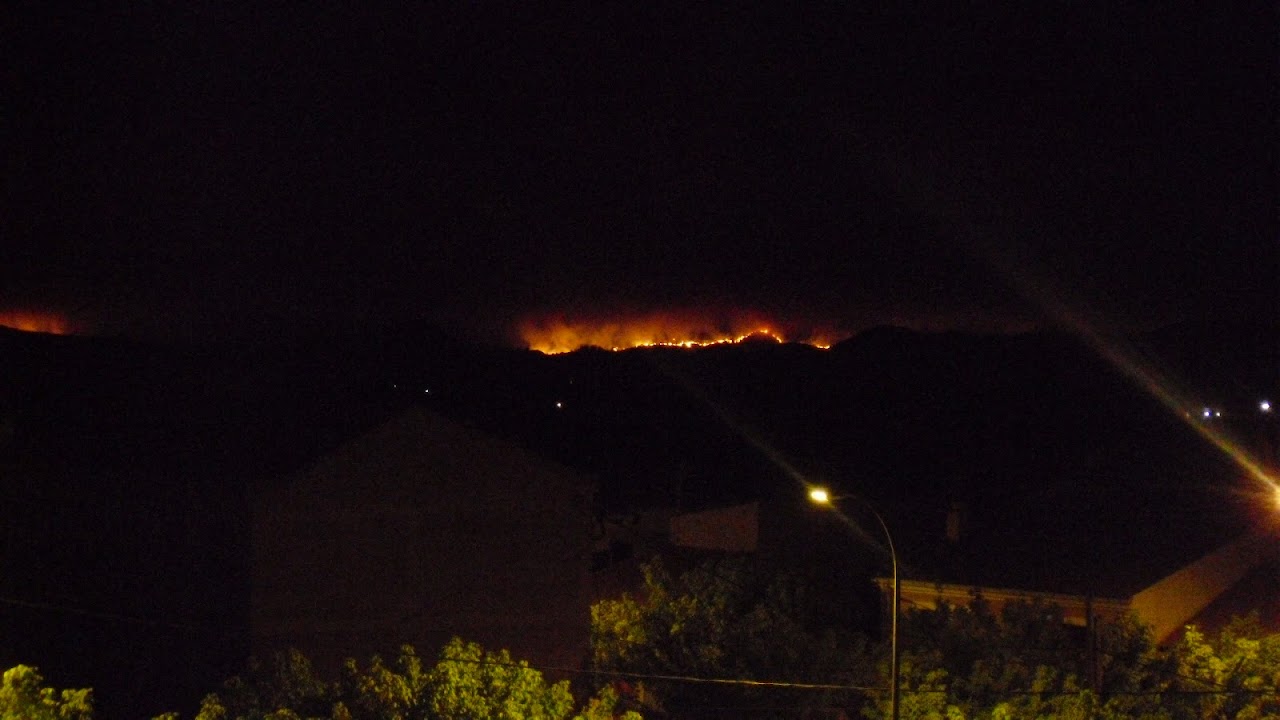 El fuego llegó al cañon de los Almadenes en el Camarillas, no llegó a males mayores, solo unos matorrales quemados arriba del todo.